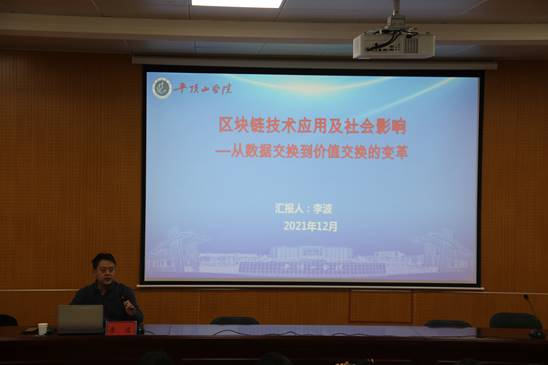 12月16日下午,副董事长李波在崇文校区综合实验楼学术报告厅以《区块链技术应用及社会影响---从数据交换到价值交换的变革》为谈球吧师生讲授思政课,公司党委书记王冠波主持。