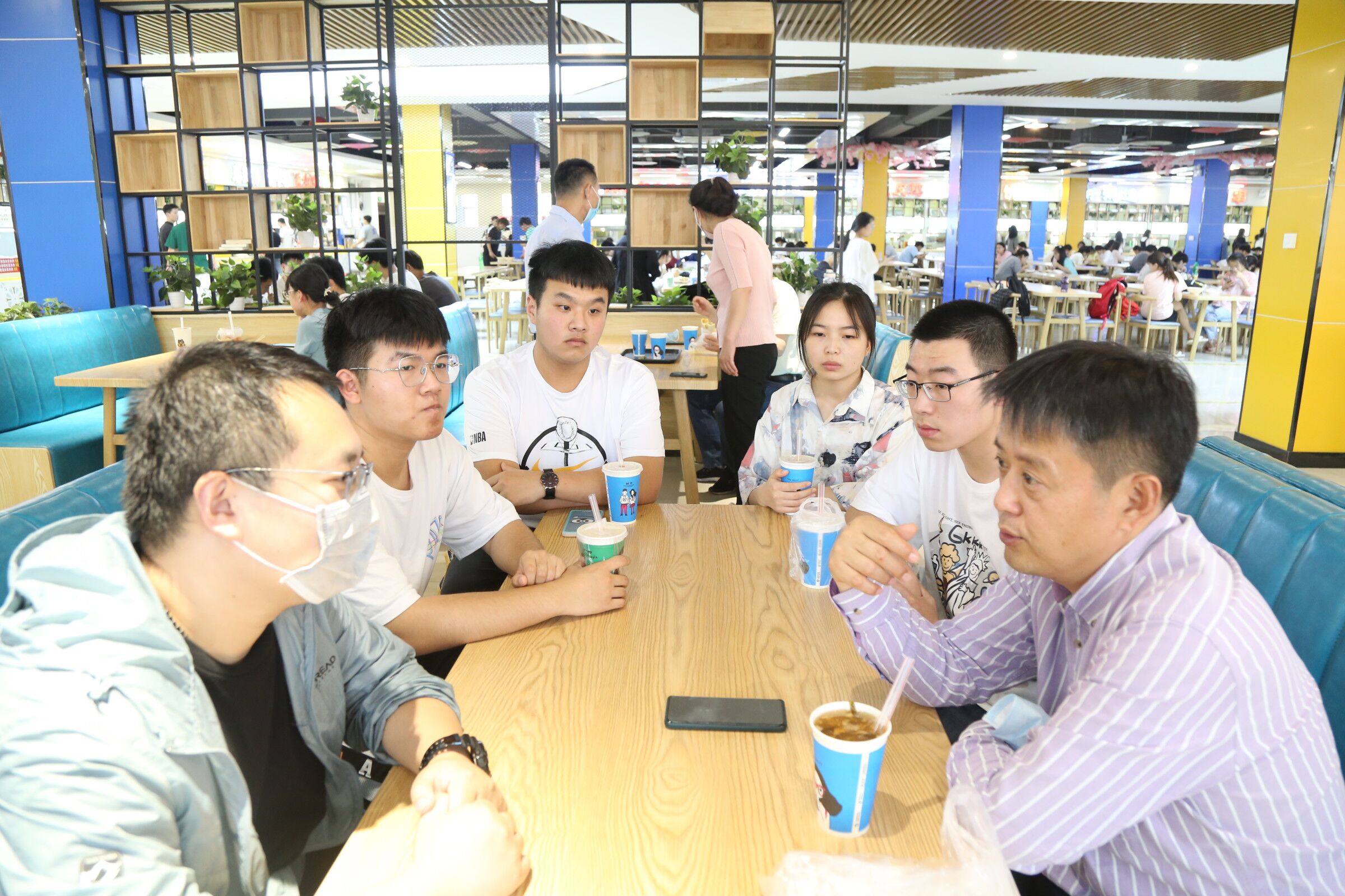 最后,李波来到崇文校区餐厅,与同学们共进晚餐,并进行了亲切的交谈。他回答了同学们比较关注的考研自习室、校园景观等问题,并征求了有关对餐厅条件、饮食安全等多方面的意见和建议,叮嘱同学们要合理膳食,注意身体健康。针对同学们面临期末考试心理压力比较大的问题,李波表示要对员工和课程教学双负责,争取为同学们提供最佳学习条件。