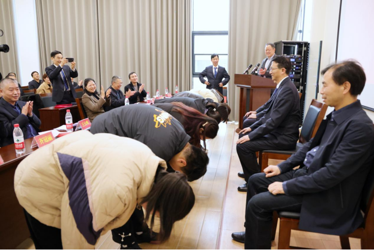 在全体与会人员的见证下,谈球吧体育2022级临床医学专业60名本科生分别给导师行拜师礼,结下一生的师徒情谊。