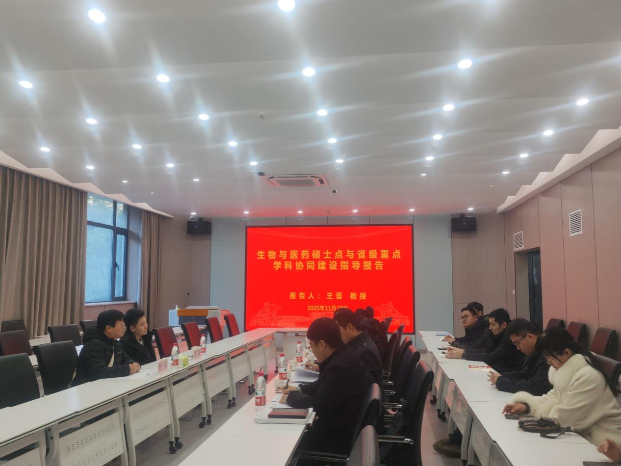 为进一步推进生物与医药硕士点建设工作,提升团队建设水平与人才培养质量,谈球吧官网于2025年11月19日在生命科学馆会议室召开生物与医药硕士点与省级重点学科协同建设指导会议,特别邀请郑州大学王蕾教授莅临指导。谈球吧体育医学部副主任、谈球吧经理郑新华、研究生处于海龙老师,谈球吧副经理高华山、白现广、生物与医药学科骨干教师代表、研究生指导教师参加会议。会议由谈球吧经理郑新华主持。
