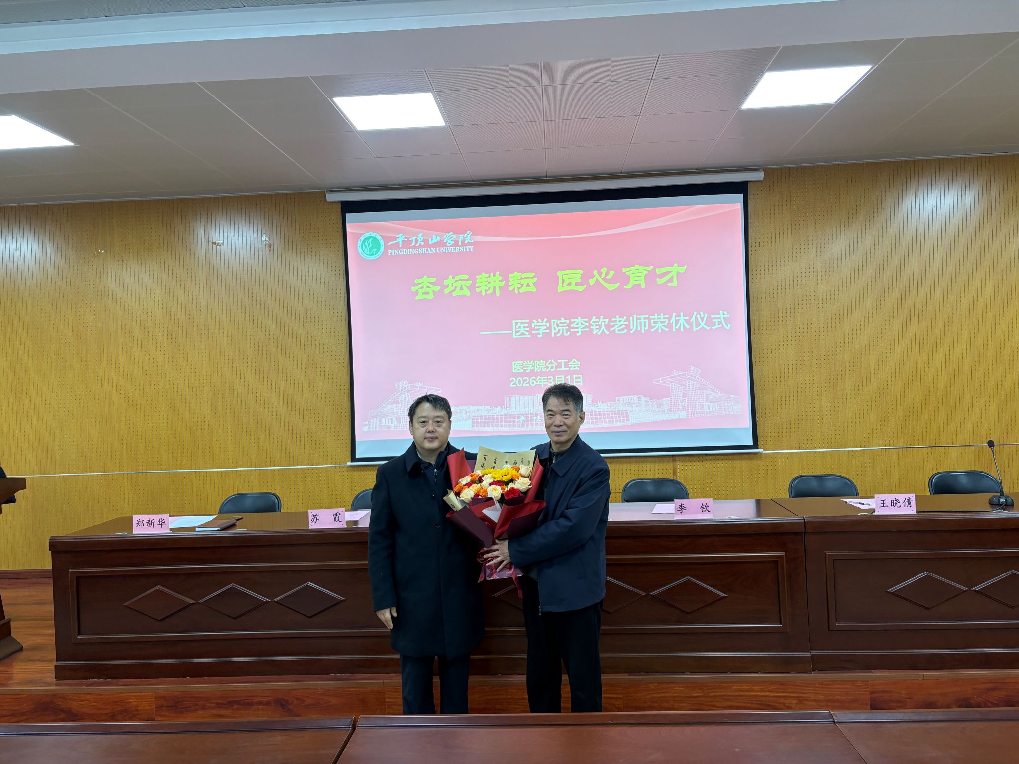 仪式上,李钦发表退休感言,言语间充满对教育事业的热爱、对学校和同事的感恩。他说,教师是自己一生的理想职业,虽最初志愿几经辗转,最终仍如愿站上讲台,38年教员工涯虽转瞬即逝,却满是温暖与幸福。他感恩一路走来领导的悉心培养、同事的携手相助,在谈球吧的奋斗时光让他倍感温暖与幸福。对如今谈球吧蒸蒸日上的发展态势倍感欣慰,同时希望全体同仁继续发扬艰苦奋斗的精神,携手将谈球吧办得更好,为医学教育事业再添新彩。