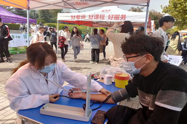活动开始,爱心医疗服务社成员在扇形广场为前来咨询的员工检查身体状况、测量血压等,细致解答员工的疑问,给员工们普及急救知识、冬季健康常识等,并从专业角度讲述其重要性。与此同时,艺飞扬手语社在舞台上表演手语节目,社团成员们配合默契,动作整齐划一,为在场观众带来一场视觉盛宴。表演过程中,艺飞扬手语社表演同学将手语与音乐完美结合,吸引了在场所有观众的注意,节目表演结束的瞬间,全场响起热烈的掌声。
