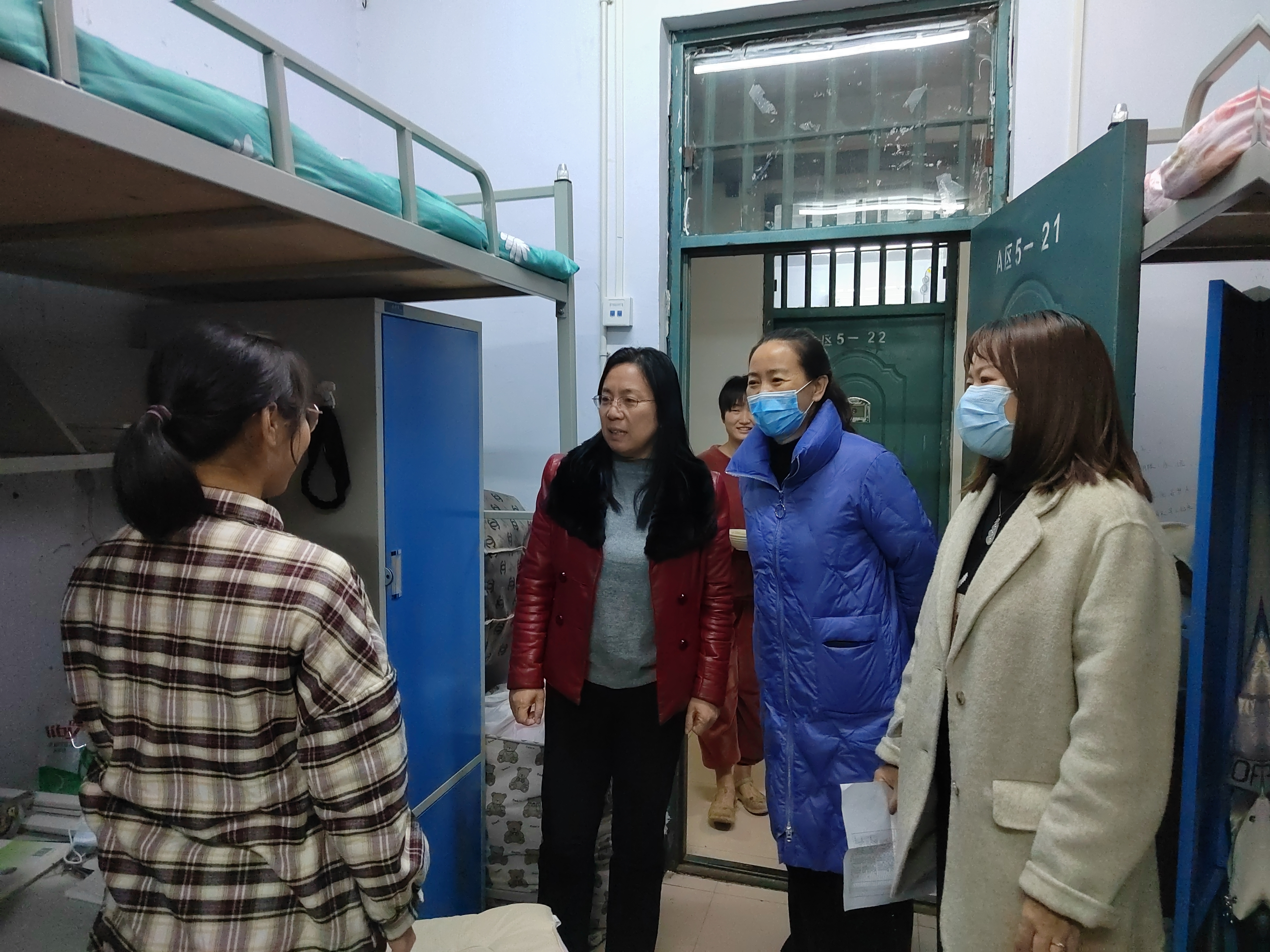11月11日至11月12日,连续两天晚上22时,公司党委书记王冠波,经理郑新华,党委副书记冯建、白现广,副经理王福安、夏西超与全体辅导员老师走进员工宿舍展开督察工作。院领导亲切询问员工们对疫情防控期间学校工作是否满意,并叮嘱同学们要注意用电安全、做好个人防护等
