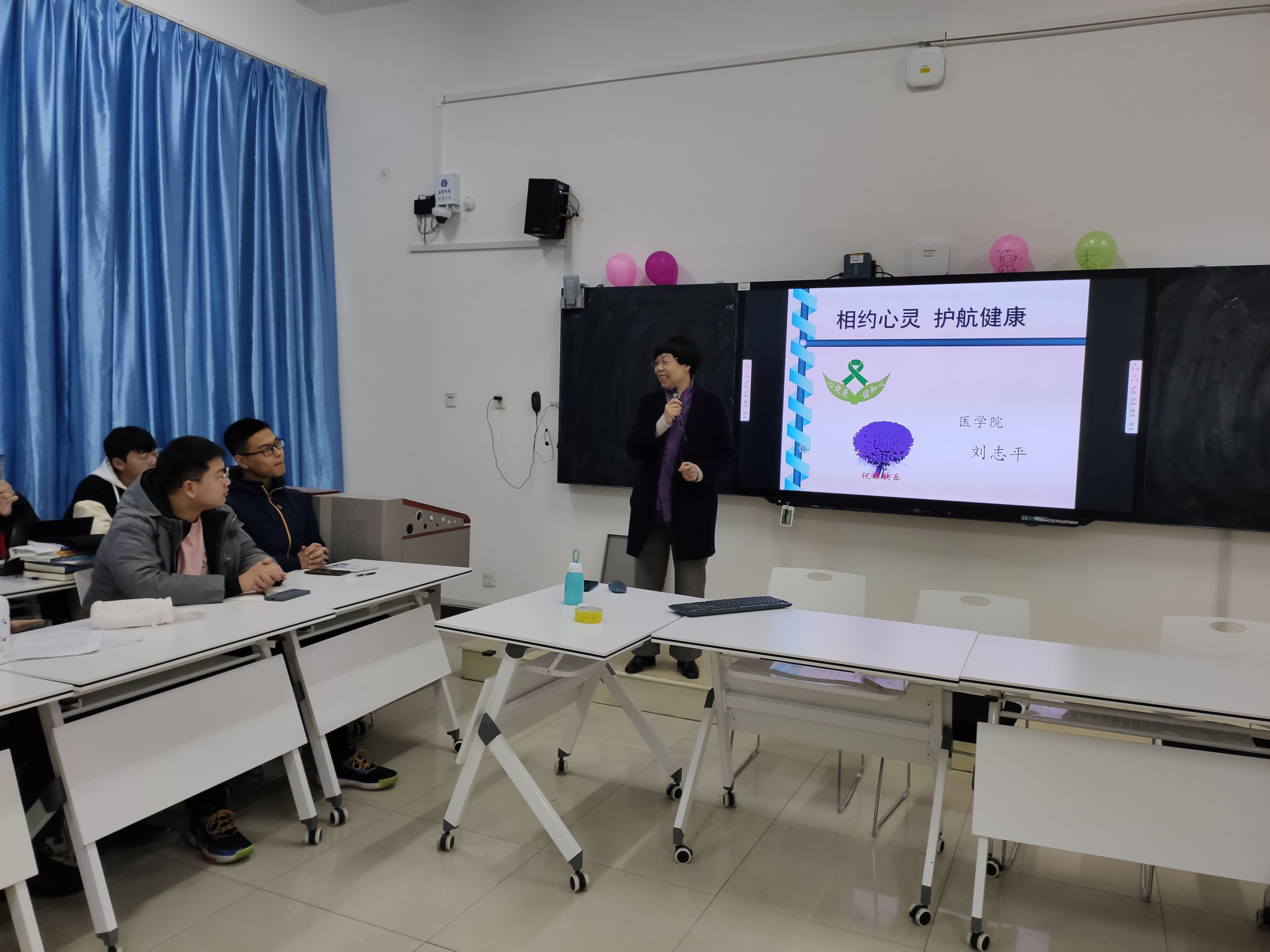 为了提升老员工对于心理健康的了解,并保持良好的心理健康状态,临床医学专业于12月16日晚在教学楼C206教室,举办了以“相约心灵,护航健康”为主题的师生座谈会。此次主讲的是刘志平老师,参与人员有杨笑怡老师及临床医学专业的全体同学。