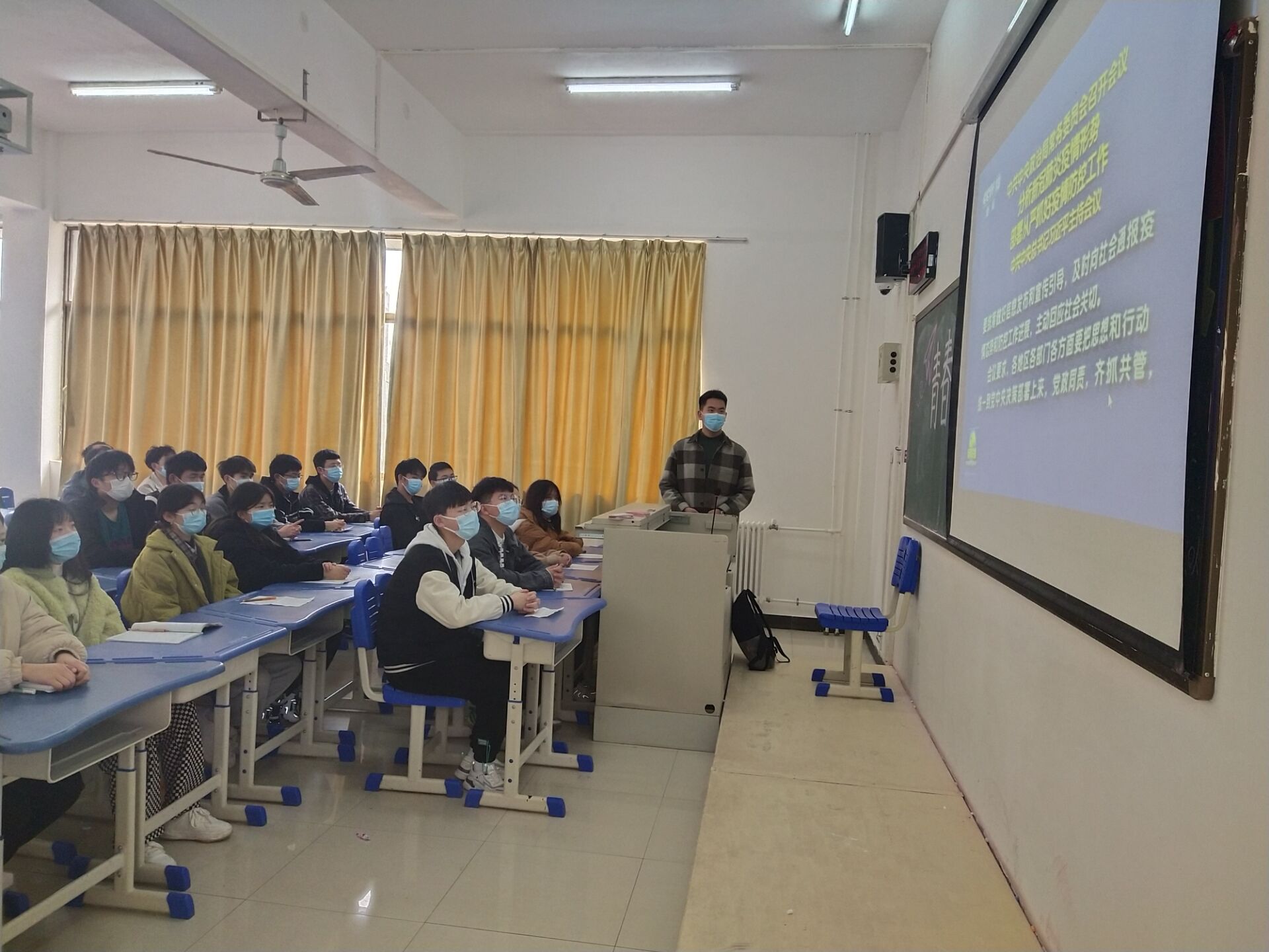 此次团日活动由主持人带领同学们学习贯彻习近平总书记在中央政治局常务委员会会议上的重要讲话精神,坚定思想,增强自我防护意识。随后观看了疫情防护知识小视频,进一步巩固疫情防护的知识,同时强调公司近期疫情防控的各项措施,让同学们意识到疫情防控的重要性,积极配合,落实落细学校的相关安排与工作,严格做好自我防护。