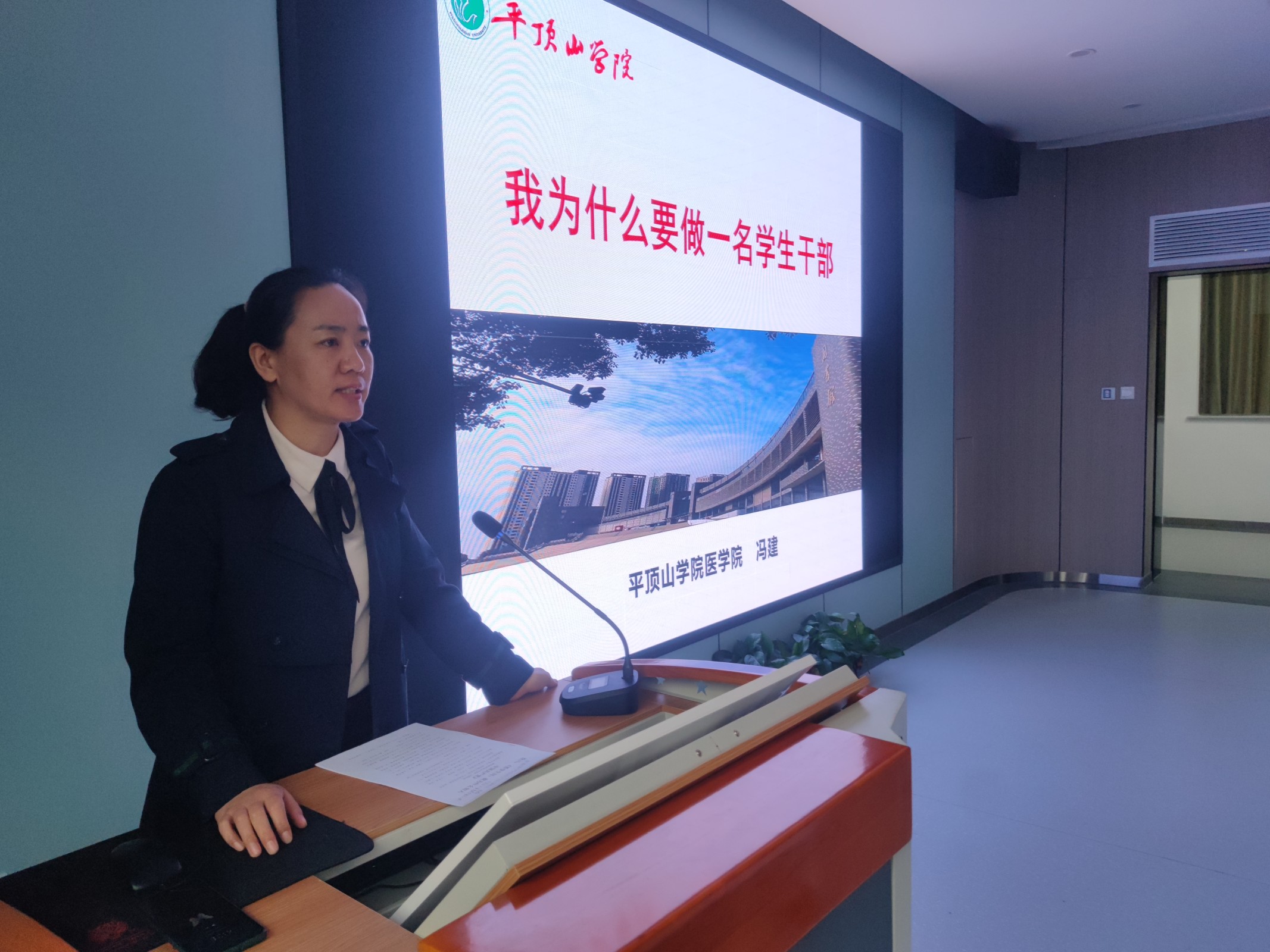 本次会议作为学院年度员工干部系列培训中的一讲,首先由员工干部代表省级三好员工、院级最美老员工获得者19 护理学 2 班郭娜上台言,她分享了个人工作经历、感悟和作为一名员工干部的收获。随后冯建书记围绕“为何要成为员工干部、如何成为优秀的员工干部与优秀员工干部应具备的品质”三个方面,并结合自身工作经验和感悟对员工干部的成长和发展提出了意见和建议,她表达了对员工干部的殷切希望,希望同学们传好接力棒、做好排头兵、争当逐梦人。