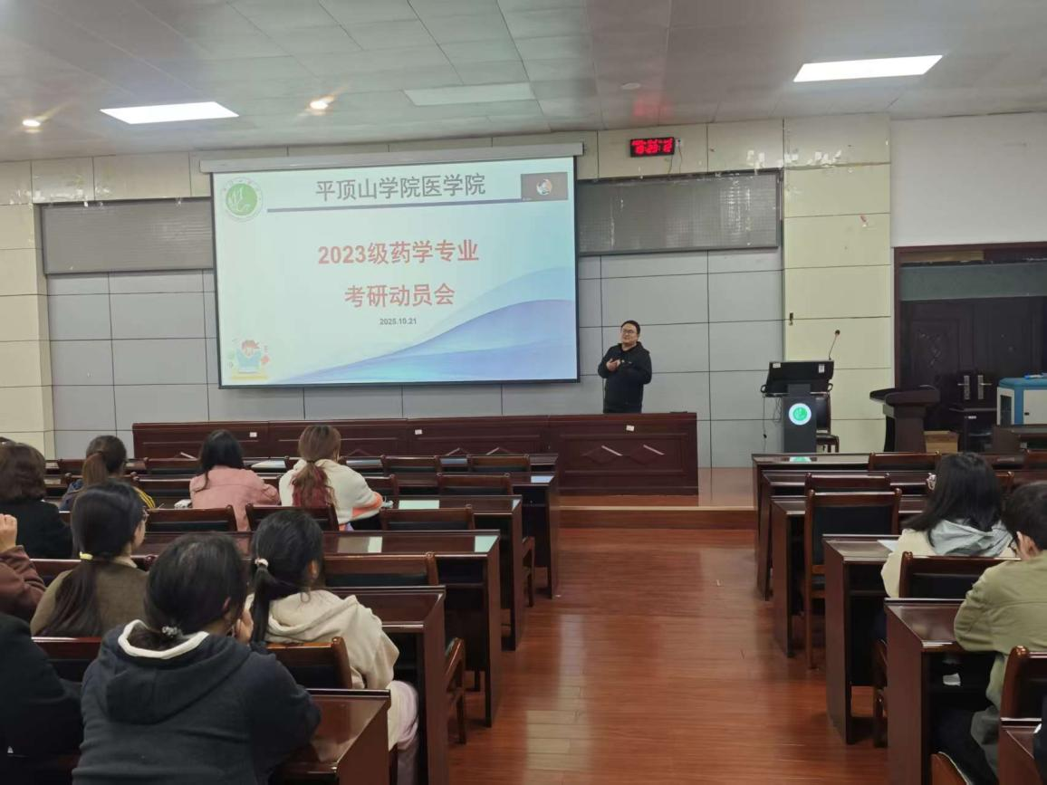 为帮助员工明晰职业规划、了解升学就业前景、激发考研热情。10月21日,药学系特邀行业导师陕西丽彩药物研究集团贾鸿宾博士为2023级药学专业员工举办“行业导师面对面、就业升学心连心”动员会,会议由药学系主任范帅主持,药学专业110余名员工参加活动。