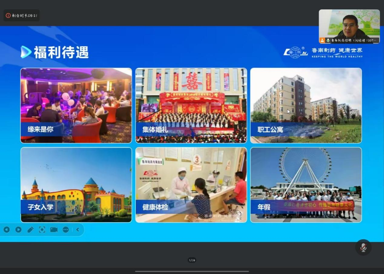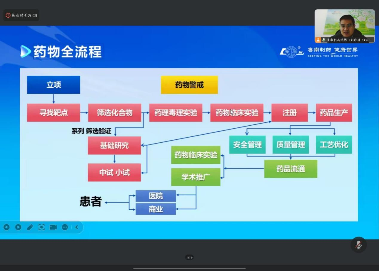 本次线上宣讲会不仅为公司学子搭建了高效的就业对接平台,也为鲁南制药集团引进优秀医药人才注入了新的活力。期待未来校企双方能进一步深化合作,共同推进人才培养与企业发展的互利共赢。
